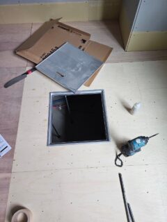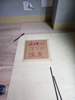 合板を貼っていき、点検口を取り付けました。