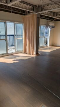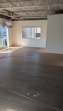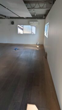 写真は施工前のフローリングが貼ってある状態です。