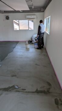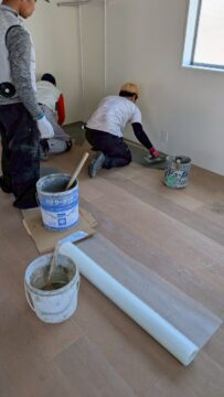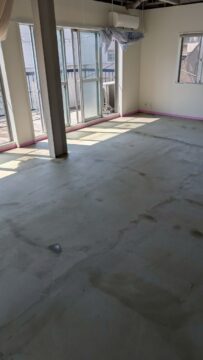 床にモルタルを塗り仕上げていきます。
