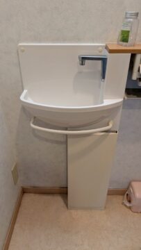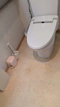 今回のご依頼はトイレ内のクロスの貼り替え・床のCF(クッションフロア)シート貼替・洗面台交換になります。