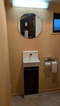 既存クロス・CFシートを剥がし貼り替え洗面台交換をしました。
