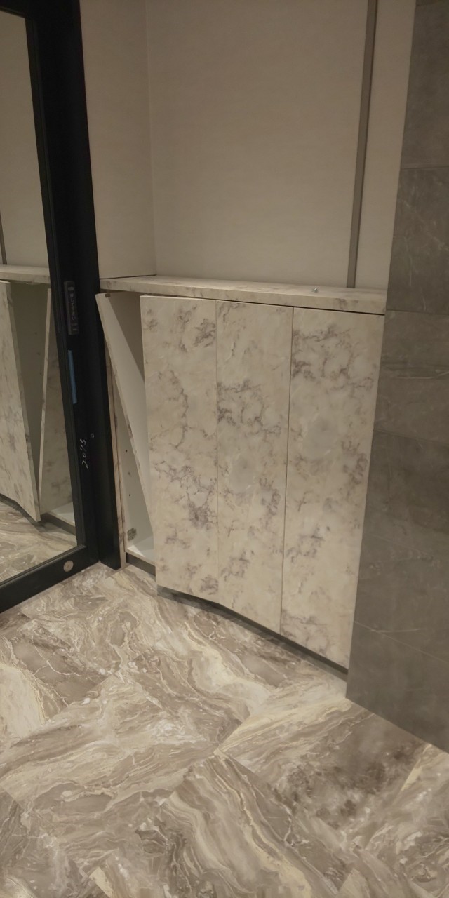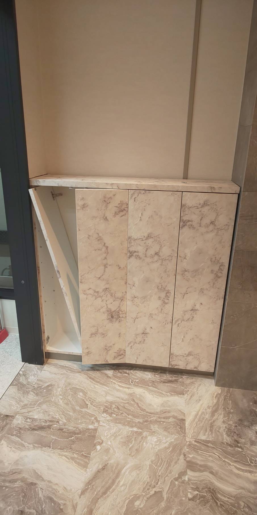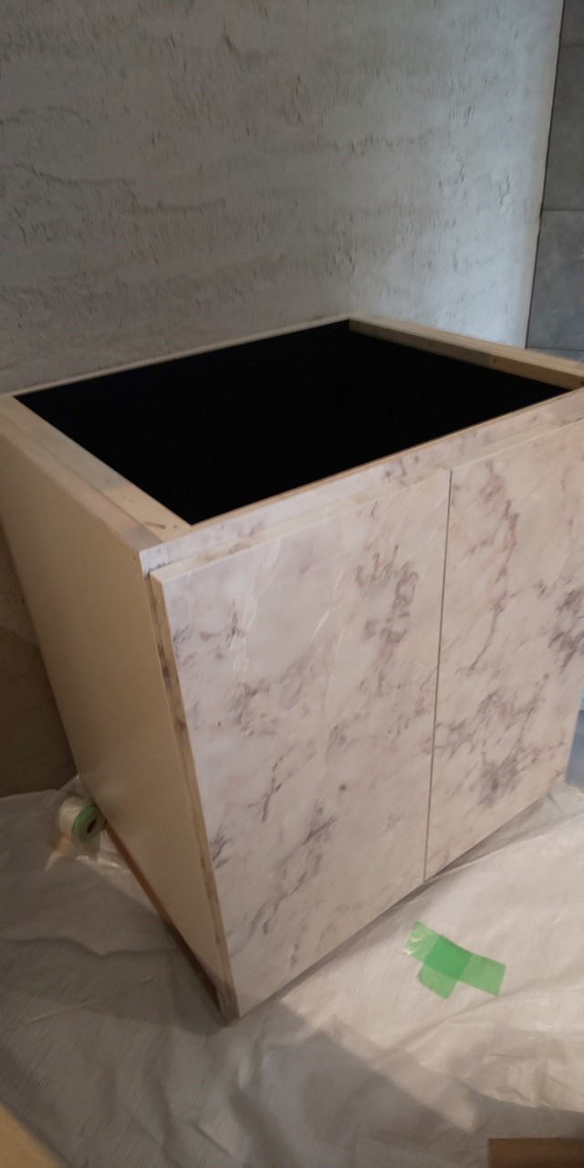 今回はメラミン化粧板と同じ素材の家具を作製しました。